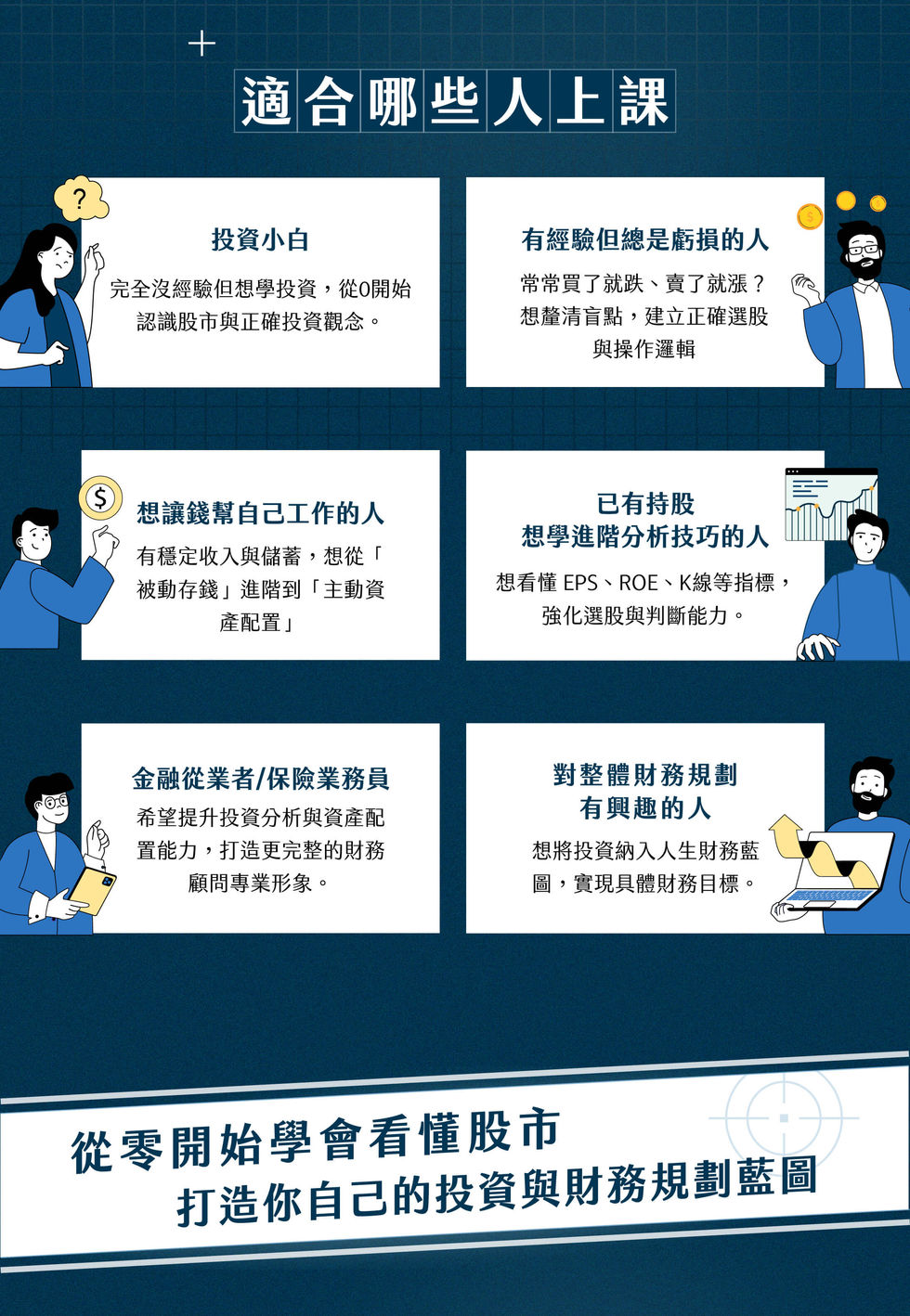 最終,你將完成一份屬於自己的投資計畫,讓財務目標一步步變成現實,提升資產累積的效率與信心。